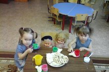 Бүген 1 нче кечкенәләр төркеме балалары тәрбияче апалары (Хамидуллина Резеда Ринатовна) белән эвәләү белем бирү эшчәнлегендә курчакларга сушкилар эвәләделәр. Алар бу эшне бик теләп тырышып башкардылар, курчакларны сыйлау аларның күңелләрен күтәрде.
