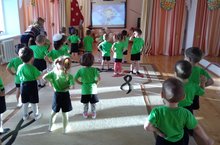 Бүген икенче кечкенәләр төркеме балалары иртәнге гимнастиканы интерактив тактадан карап эшләделәр. Алар бик тырышып һәм теләп мультфильм геройлары кебек хәрәкәтләнделәр.
