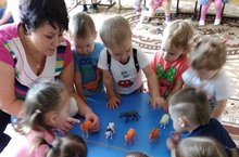 Халык авыз иҗаты белән таныштыруны дәвам итеп,йорт хайваннарының исемен ныгытып.Халык авыз иҗатына кызыксыну тәрбияләү максатыннан, 1нче кечкенәләр төркеме тәрбиячесе Габбасова Л.Р. балаларны якыннан таныштырды. Аларның кайда яшәгәнлекләре,ничек итеп кычкырулары,нәрсә ашаулары турында тирәнтен белем бирде.