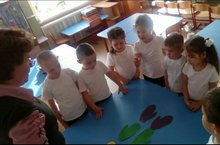 2 нче кечкенәләр төркеме балалары физкультура шөгылендә тәрбияче Гараева Ә.М. б\н урманга сәяхәткә бардылар. Аларны куян баласы кунакка чакырган иде. Көн матур булганлыктан, балалар урманга бик җинел килеп җиттеләр. Аларны күрүгә куян баласы бик шатланды.Бергәләшеп күңел ачтылар.