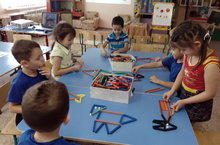 В подготовительной группе на занятии математики дето познакомились с числами до 9, уточнили представления о многоугольнике, развивали умение находить его стороны, углы и вершины. Закрепляли представления о временах года и месяцах осени. Учили составлять число 3 из двух меньших чисел. Решали задачи. В этом им помог сюжет сказки А. Толстого " Золотой ключик. " Дети разделили золотые монеты между котом Базилио и лисой Алисой. В конце занятия из многоугольников они составили лису Алису. Детям всем занятие понравилось.
