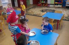 Бакчабызда балаларга кечкенәдән хезмәт тәрбиясе нигезләре салына .Балаларда өлкәннәргә, иптәшләренә карата ярдәм итү хисе, чисталык-пөхтәлек сыйфатлары тәрбияләнә. Уртанчылар төркеме балалары да бакчада бик теләп тәрбияче һәм тәрбияче ярдәмчесенә булышалар. Көн саен чиратлап дежур тору аларга бик кызыклы һәм җаваплы вазифа булып тора.