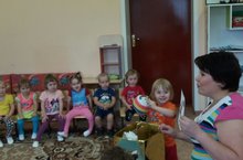 Бүген, 6 октябрь конне 1 нче кечкенәләр төркеменә кунакка Алсу курчак килде. Ул балаларның сөйләмен үстерергә ярдәм итте, рәсемнәр карарга, анда сүрәтләнгән предметларны һәм аларның сыйфатларын атарга, рәсемдә сүрәтләнгән уенчыкны , предметны өстәлдә табып, исемен, гамәлен атый белергә өйрәтте.