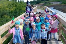 Бүген зурлар төркеме балалары тәрбияче Мөхәммәтшина С. С. һәм тәрбияче ярдәмчесе Булатова Ю. белән Саба елгасына сәяхәт ясадылар. Алар үсемлекләрне, төрле матур чәчәкләрне күзәттеләр, чишмә суының чисталыгын күрделәр, елга буенда зур тракторларның нинди эш башкаруын карап тордылар.
