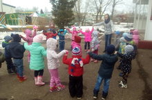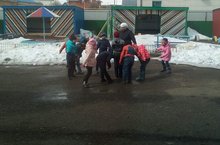 Мәктәпкә әзерлек төркеме балалары язгы матур көннәрдә урамда уйнарга бик яраталар. Тәрбияче Г.Г.Якупова белән бүген дә “Көн-төн”, “Мәче тычкан” уеннарын уйнадылар.Төркем белән уеннар уйнап, табигатьтәге үзгәрешләрне күзәтеп , бакчада балалар вакытларын файдалы үткәрә .
