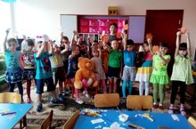 Бүген тәрбияче Богавеева Г.Ш. зурлар төркеме балалары белән кул хезмәтеннән "Уенчыклар" темасына шөгыль үткәрде. Балалар турыпочмаклы кәгазьне бөкләп, үзләре яраткан уенчыкларын: аю, куян, төлкене ясадылар. Эш барышында шушы уенчыкларны чагылдырган хәрәкәтле уен уйнадылар. Кунакка әкияттән тылсымчы килеп, балаларга әкият геройларына иптәшләр ясарга тәкъдим итте.