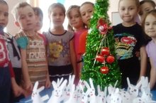 Буген зурлар төркемендә тәрбияче Богавеева Г.Ш. җитәкчелегендә конструирование шөгыле “Мактанчык куян” исеме астында үтте. Балалар түгәрәкне бөкләп , аның ярты өлешеннән конус ясарга өйрәнделәр. Барлыкка килгән өлешләрдән куян ясадылар. Чыршы тирәсендә бик күп куяннар барлыкка килде. Балалар табышмаклар чиштеләр, уеннар уйнадылар. Ахырдан чыршы тирәли әйләнеп, җыр җырладылар.