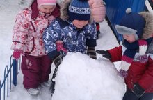 “Кар бабай!” Бүген уртанчылар төркеме балалары тәрбияче апалары Якупова Г.Г. белән саф һавада рәхәтләнеп кар белән уйнадылар. Кышка кереп килгәндә яуган, йомшак, җепшек кардан ясалган шарлардан “Кар бабай” сыны әвәләү балаларга бик ошады.
