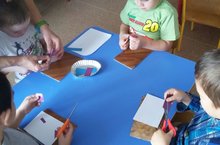 Бүген уртанчылар төркеме балалары кисеп- ябыштыру шөгылендә көймә кисәргә өйрәнделәр. Тәрбиячеләре Мухаметшина С.С. балаларны туры почмакны кыска ягын почмаклап кисеп образ тудырырга, матур композиция төзергә, чиста, пөхтә эшләргә өйрәтте.