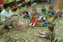 Буген тәрбияче Габбасова Л.Р. ясле төркеме балаларына "Йокла, курчак" шигырен укыды. Максат итеп ул шигырьнең эчтәлеген аңлап кабул итүләренә ирешу, балаларның игътибарын үстерү, курчакка карата кайгыртучанлык тәрбияләүне алды.