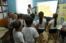 В рамках недели "Здравствуй, золотая осень!" воспитатель по обучению русскому языку Мавлявиева Л.А. с детьми подготовительной группы провела беседу об осени, закрепила знания об осенних месяцах. С помощью ИКТ дети научились различать листья разных деревьев, играли в подвижные игры "Собери листья быстрее" и "Хитрый лис".