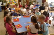 2 кечкенәләр төркеме балалары математиканы уйный-уйный үзләштерәләр. Тәрбиячеләре Хайриева Г.Т. белем бирү эшчәнлеген бик кызыклы итеп уен формасында үткәрде. Уен барышында балалар квадрат һәм түгәрәкне(круг) атый һәм таный белергә өйрәнделәр,предметларны сыйфатлары буенча классификацияли,характерлы билгеләр буенча образлар ясарга өйрәнделәр.