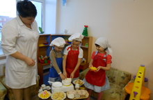 Мәктәпкә әзерлек төркеме тәрбиячесе Габбасова Ләйсән Равилевна балаларны өлкәннәр хезмәте белән таныштыруны дәвам итеп, пешекче һөнәре, пешекченең эш кораллары, вазифалары турында сөйләде.