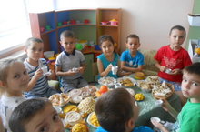 Бүген ясле төркеме балаларына кунакка Алсу курчак һәм Марат курчаклар килделәр. Алар балаларны савыт-саба белән таныштырдылар, аннары балалар белән бергәләшеп табын артында сыйландылар. Нәниләребез сөенделәр, курчаклар белән уйнадылар.