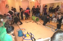 Беренче кечкенәләр төркеме балалары бәйрәм иртәсен әтиләр белән берлектә "Күңелле стартлар" күңел ачу- спорт ярышлары оештырып үткәрделәр. Бер команда- әниләр, ә икенчесе- әтиләр үзара тапкырлыкта, җитезлектә көч сынаштылар. Ә балалар үзләренең концерт программасын тәкъдим итте. әниләрне әтиләр, балалар, бакча коллективы бәйрәм белән котлады.