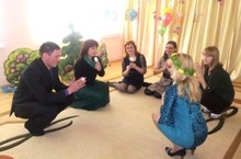 Музыка җит.әкчесе Галимуллина А.Р. музыкотерапия буенча «Язны эзләргә барабыз» темасына мастер – класс үткәрде. Музыка җитәкчеләре балалар ролен башкардылар, ә Алсу Ринатовна ФГОС ка туры килә торган белем бирү эшчәнлеге үткәрде.
