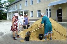 Бакчабызга ком кайтты. Барлык эшчеләр һәм әти- әниләр дә ком ташыдылар. Балалар рәхәтләнеп комлыкта уйныйлар.