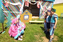 Урамда оештырган татар өендә әбиләребез яратып чиккән сөлгеләр, эскәтерләр, бик күп төрле чиккән япмалар, татар халык ризыклары белән балаларны каршыладык.