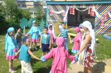 Бүген бакчабызда күңелле көйләр агылды, капкага чиккән сөлгеләр элеп куелды, һәр бала бакчага шатланып килде.