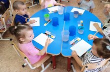 Беренче кечкенәләр төркеме балалары (тәрбияче Хазиева А.Х) рәсем шөгылендә гуашь буяулары б/н таныштылар, буяуларны суда эретергә өйрәнделәр.