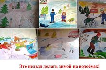 Скоро зима. С целью профилактической работы с воспитанниками и их родителями по изучению правил безопасности на водных объектах в осенне-зимний период в детском саду в с 1 октября по 20 октября был проведен конкурс рисунков "Буду бдительным на льду и на воде!" На конкурс были представлены 28 работ на тему «Это нельзя делать зимой на водоемах!».