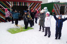 Кыш көне уеннарның ниндиен генә уйнамыйлар. Зурлар төркеме балалары тәрбиячеләре Хазиева А.Х) җылы көндә Кар бабай тәгәрәтеп уйнарга яраталар.