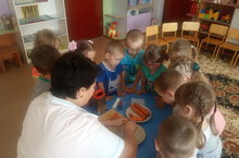 Атна темасына нигезлэнеп, уртанчылар торкеме балалары кишер белэн эксперимент уткэрделэр. Яшелчәләргә, җиләк-җимешләргә карата сак караш, аларның витаминнарга бай булуын , яшелчәләрнең файдалы яклары булуын белделэр.