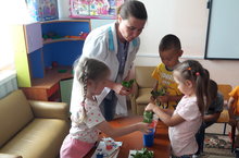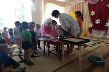 Экспериментлар атнасы уңаеннан бүген уртанчылар, зурлар һәм мәктәпкә әзерлек төркеме балалары су белән тәҗрибәләр үткәрделәр. Кунакка “Тамчыкай” да килгәч балалар тагын да җанланып киттеләр. Алар бик теләп һәм төгәл итеп Тамчыкайның табышмакларына һәм “Су ни өчен һәм нәрсәләргә кирәк?”-дигән сорауларга төгәл җавап бирделәр.