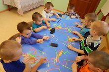 Таякчыклар белән санарга, төсләрне аерырга, өйрәнәбез, төрле фигуралар төзибез.