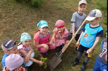 Табигатьне саклыйк! 12.05.2014 Бердәм экологик дәрес уңаеннан, без балалар белән бакчабыз территориясен җыештырдык. Тирә- якны яшелләндерү максатыннан җимеш куаклары утырттык.
