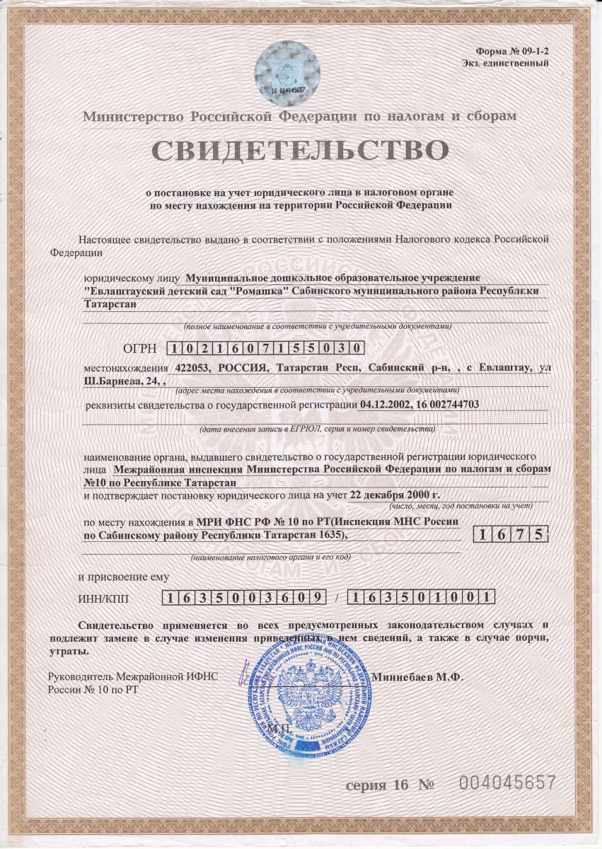 Короткое название: МБДОУ "Евлаштауский детский сад "Ромашка"