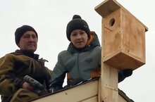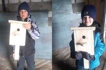 Участники Акции "Скворечник-2023": ученик 1 класса Галиахметов Аскар и ученик 4 класса Галиахметов Амир