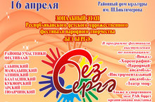 16 апреля проводится зональный этап Республиканского детского художественного фестиваля народного творчества «БЕЗ БЕРГӘ». Время выступлений районов: с 9.00 ч. по 18.00 ч. Вход свободный. Место проведения: районный дом культуры им. Ш. Биктимерова.