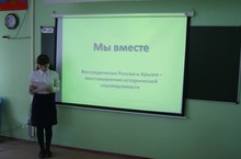 В целях воспитания гражданской позиции, формирования патриотизма учащихся, правового просвещения, углубления знаний школьников о государственном устройстве страны и поощрения их творческой активности и на основании приказа МО и НРТ в гимназии прошли Парламентские уроки 2014 "Мы вместе", посвященные интеграции России, Республики Крым и Севастополя.