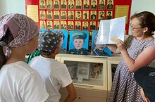 Воспитанники пришкольного лагеря "Мирас", посетили увлекательную экскурсию в районную библиотеку. Библиотекарь рассказала ребятам о Великой Отечественной войне. Дети поделились впечатлениями об услышанном, вспомнили военные песни, прочитали стихи, которые помогли передать атмосферу того времени. Юные читатели узнали о героях Великой Отечественной войны и подвигах на полях сражений, о стойкости тружеников тыла в военные годы. Но особый интерес у учащихся вызвали рассказы о детях, которые наравне со взрослыми сражались за свободу нашей Родины
