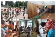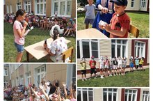 12 июля у нас в летнем лагере вожатые провели шуточное состязание между отрядами для повышения улыбаемости и хохотаемости. В начале был танец вожатых и детей под веселую песенку. Дети не забыли и про кричалки для лагеря. Конечно, в жизни лагеря есть шутки. Они были уместными и не обидели никого из детей.