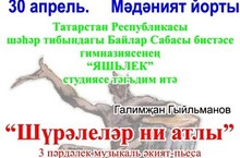 30 апрель конне сэгать 14.00 дэ Саба районы мэдэният йортында гимназиянен "Яшьлек" театр студиясе "Шурэле ни атлы" дигэн спектакль курсэтэ.