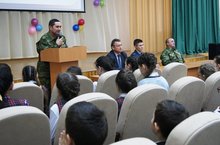 В рамках месячника военно-патриотического воспитания 20 февраля для 8 классов была организована встреча с детьми военных лет (Гафиятуллин А.Н., Шайхутдинова Ф.К., Шайдуллин Ф.З.). В начале мероприятия учащиеся 6б,г,д классов (классные руководители: Мирасова А.И., Гимазова Д.Т., Хасанова А.А.) показали поздравительный концерт. Затем гости рассказали ученикам о жизни в военные годы, когда они учились и работали. Они призвали детей хорошо учиться, быть воспитанными и уважительно относиться к старшим, сверстникам.