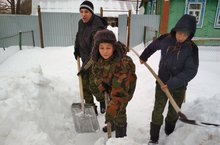 Тимуровская работа 26.02.2018 Наши тимуровцы не сидят без дела.Каждую неделю каждый взвод посещает своих подшевных и помогает в домашних делах: уборка снега, уборка по дому и др.