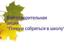 Акция "Помоги собраться в школу" 16.08.2017 17 августа учащиеся нашей школы будут участвовать в акции "Помоги собраться в школу", которая пройдет в актовом зале ЦДТ. Приглашены 5 учащихся вместе с родителями. Мы выражаем огромную благодарность за помощь и понимание со стороны наших спонсоров.