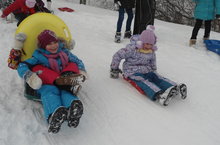 День начался с построения и плавно перешел в игры с использованием сингапурского метода обучения. Затем дети разделились на 2 команды и вышли кататься на лыжах и ледянках.
