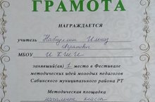 Учитель Набиуллин И.А. принял участие в Фестивале методических идей молодых педагогов Сабинского муниципального района РТ и получил 1 место. Методическая идея была призвана лучшей и получила большее количество баллов. Желаем Набиуллину И.А. дальнейших успехов в работе!