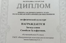 Поздравляем нашу талантливую ученицу 8 класса, Загидуллину Сюмбелю, с блестящим результатом на заключительном этапе Республиканской олимпиады школьников по физической культуре!