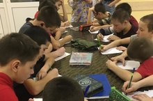 В казарме кадеты не теряют зря время. Ночные воспитатели Мияссарова Р.Г. и Курбанов Н.М. проводят различные творческие и интеллектуальные мероприятия. В этот раз ученики 5-6 классов писали диктант по русскому языку.