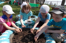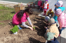 Дети с удовольствием наблюдали за посадкой цветов.