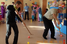 Наши папы вместе со своими детьми играли в "Весёлые старты".