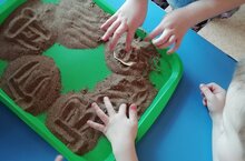 На занятии по обучению грамоте дети помогли дедушке, бабушке и курочке Рябе отыскать цыплят, которую украла волшебница песочной страны. Чтобы попасть туда, дети выполняли разные задания и, написав букву ц на песке, нашли цыплят. Вернули их семье.