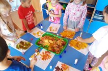 ООД по позновательному развитию старшей разновозрастной группе на тему "Дары осеннего леса". Воспитанники познакомились с разнообразием плодовых деревьев- учились называть, узнавать их по плодам. Также сделали аппликацию из сухих листьев "Осенний пейзаж"