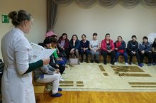 Потом выступила фельдшер Хусаенова Р.А. на тему «Профилактика инфекционных заболеваний в детских дошкольных учреждениях»