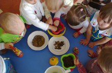 Сегодня малыши познакомились со сказочным героем - Колобком. Вместе с ним играли познавательные игры, сравнивали глину и песок.